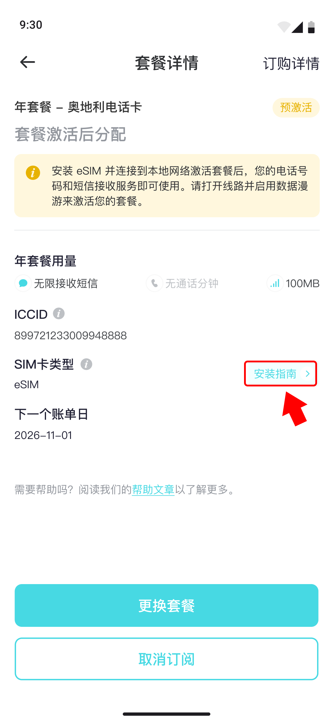 (2) 激活您的套餐