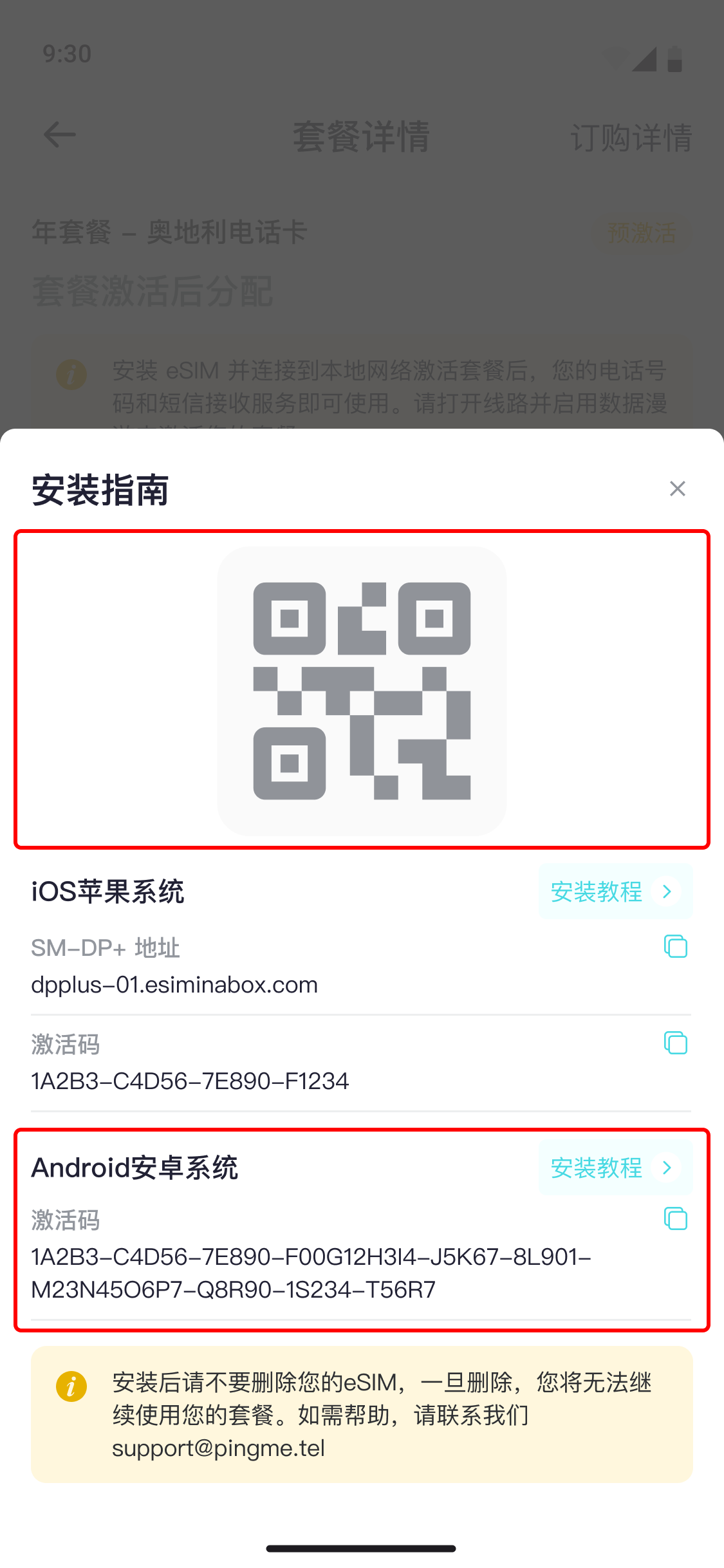 **请注意,eSIM只能安装一次。您应该在网络稳定的环境下进行安装,并且不要中断安装过程。安装完成后,请勿删除您的eSIM。